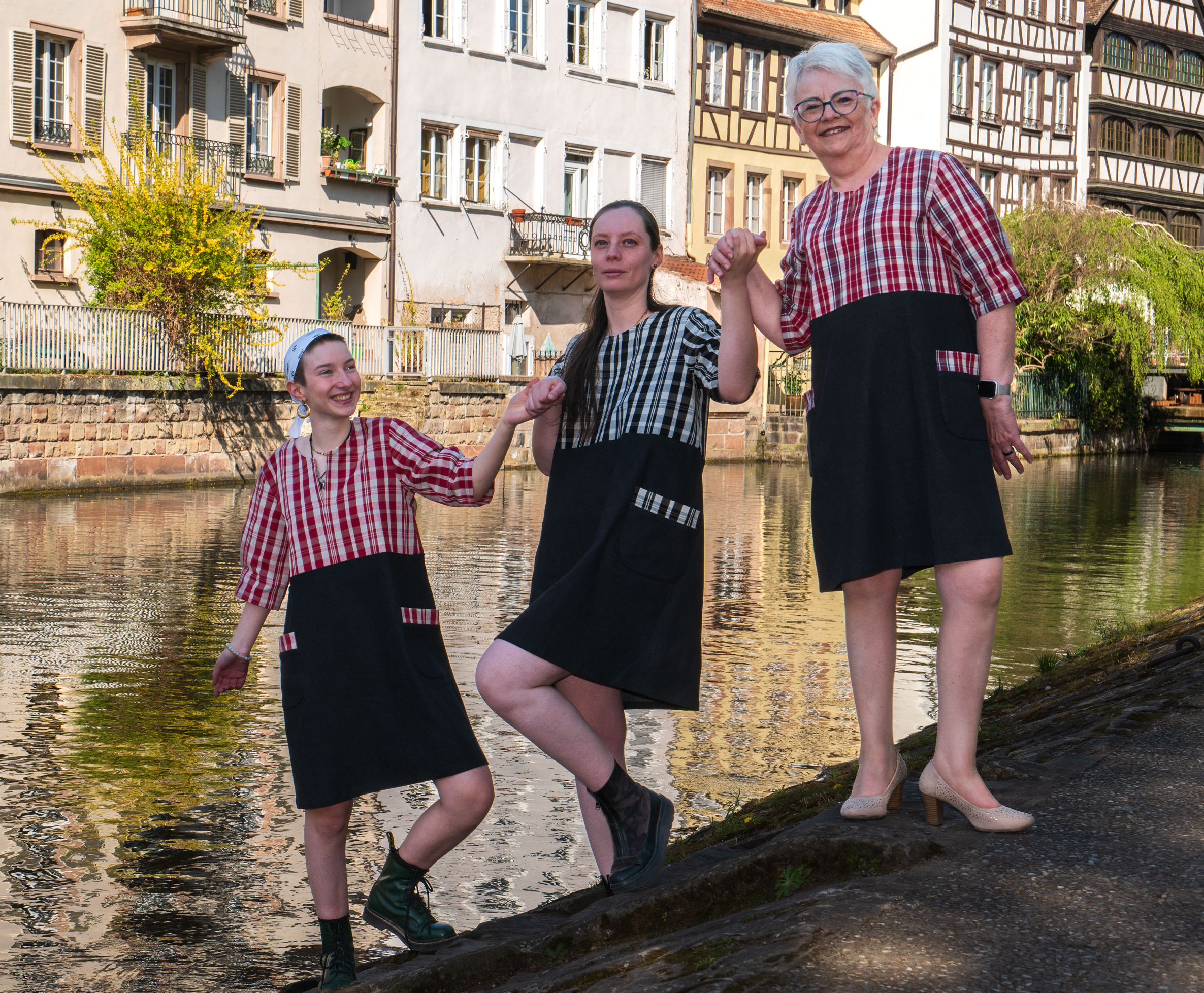 Nous avons conçu Lisel jean noir pour être portée large avec une aisance d’environ 20 cm. L’aisance est le nombre de cm en plus du tour de poitrine qui permet d’être à l’aise dans son vêtement. Il y a 4 cm entre chaque taille. Si vous craigniez que la robe soit trop large, vous pouvez prendre une taille en dessous. Mais pas deux, la robe s’enfile et avec une aisance 10 cela devient de la gymnastique.
